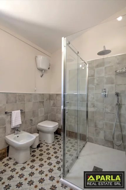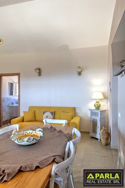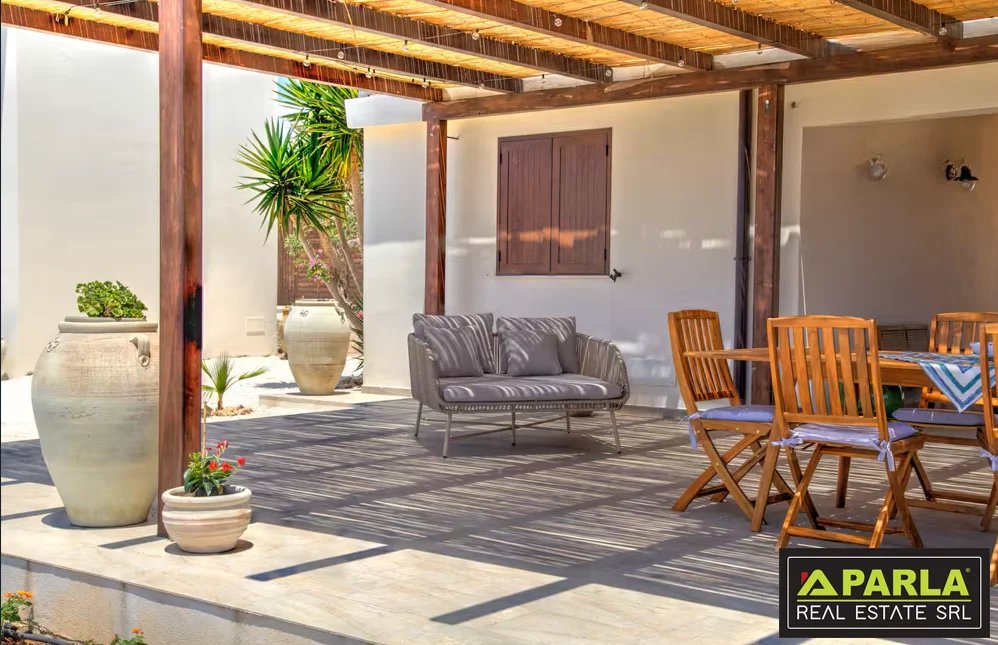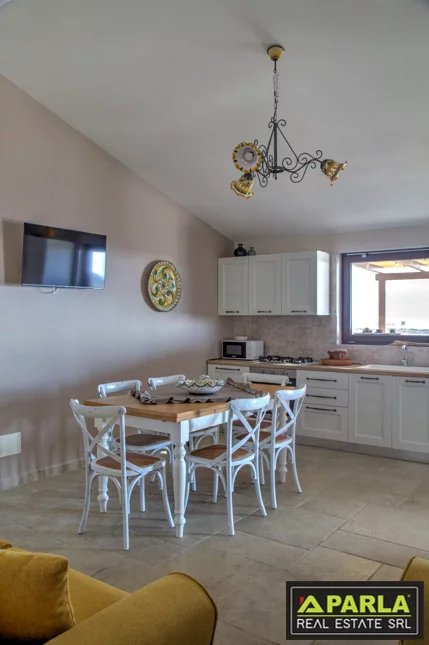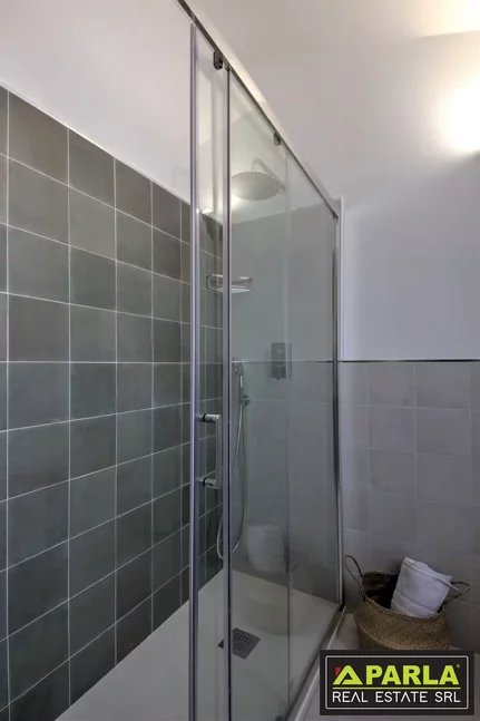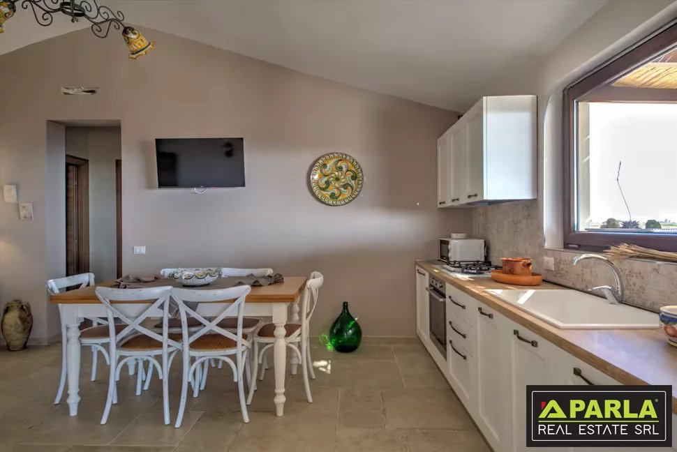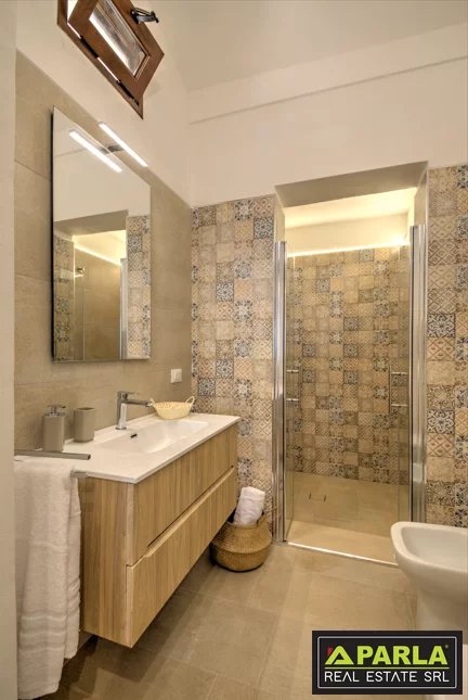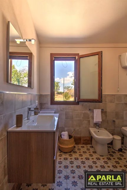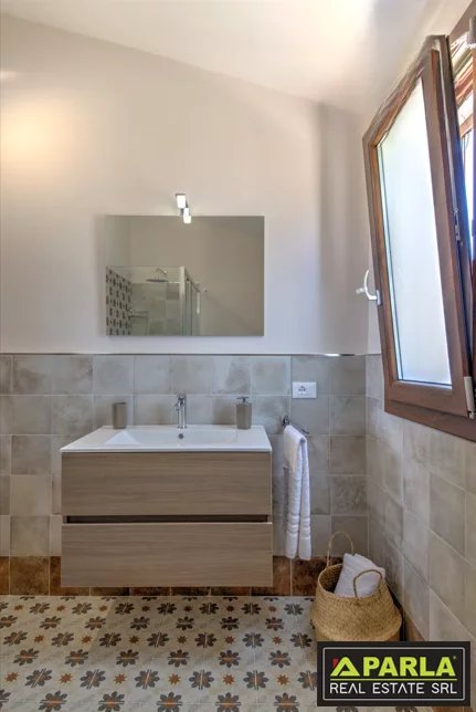 La villa dispone di tre moderni bagni con box doccia, caratterizzati da un'atmosfera rustica ma elegante. La zona giorno è spaziosa e luminosa, con una cucina completamente attrezzata, perfetta per chi ama cucinare e condividere i pasti con gli amici. Questo spazio è ideale per riunirsi e creare momenti indimenticabili.